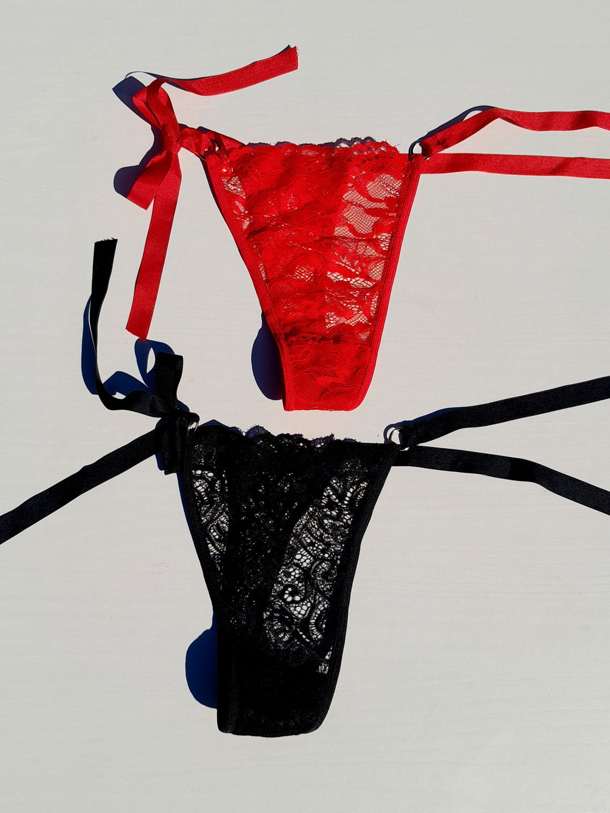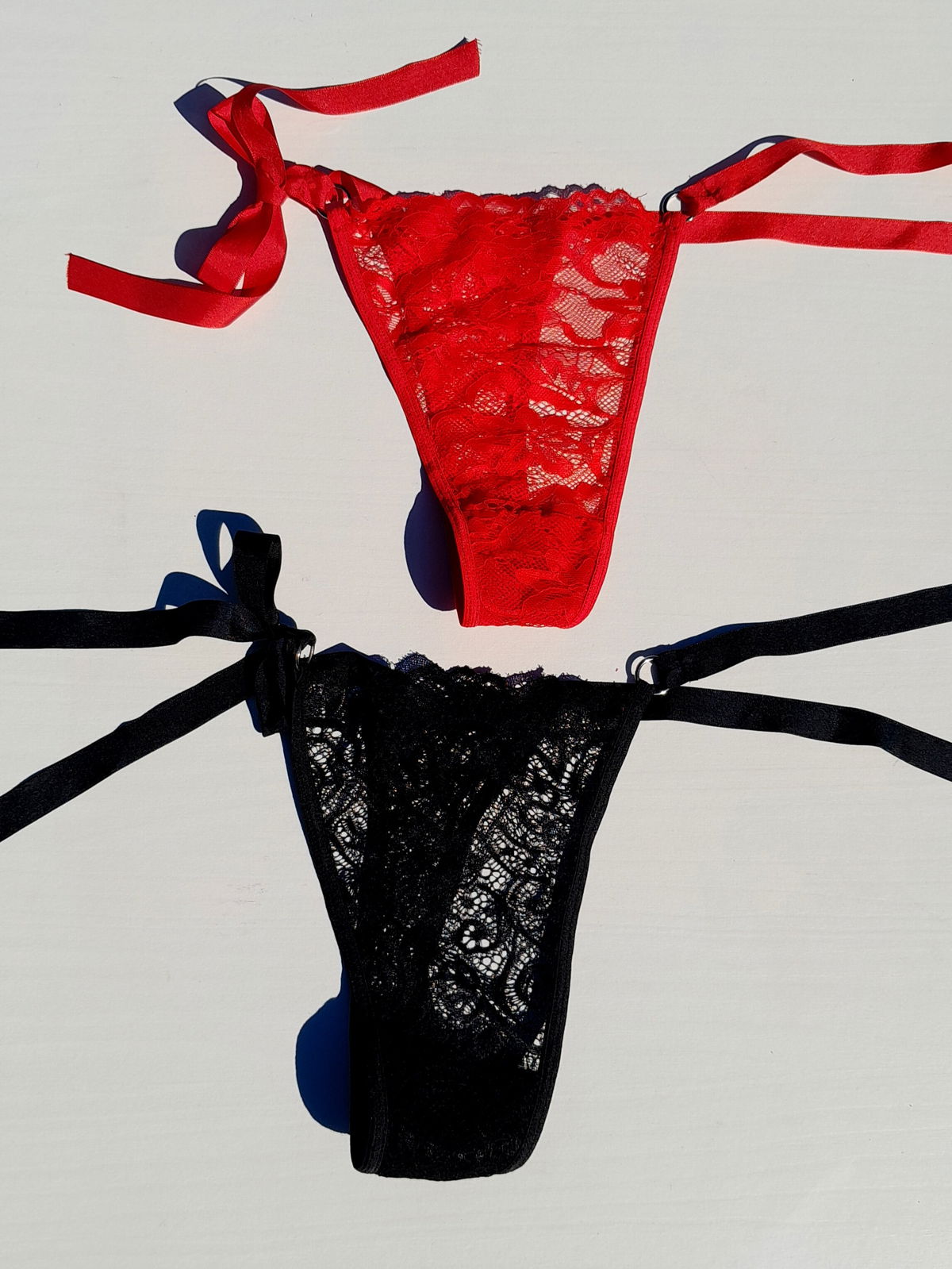 Tanga de encaje con tiras para atar.